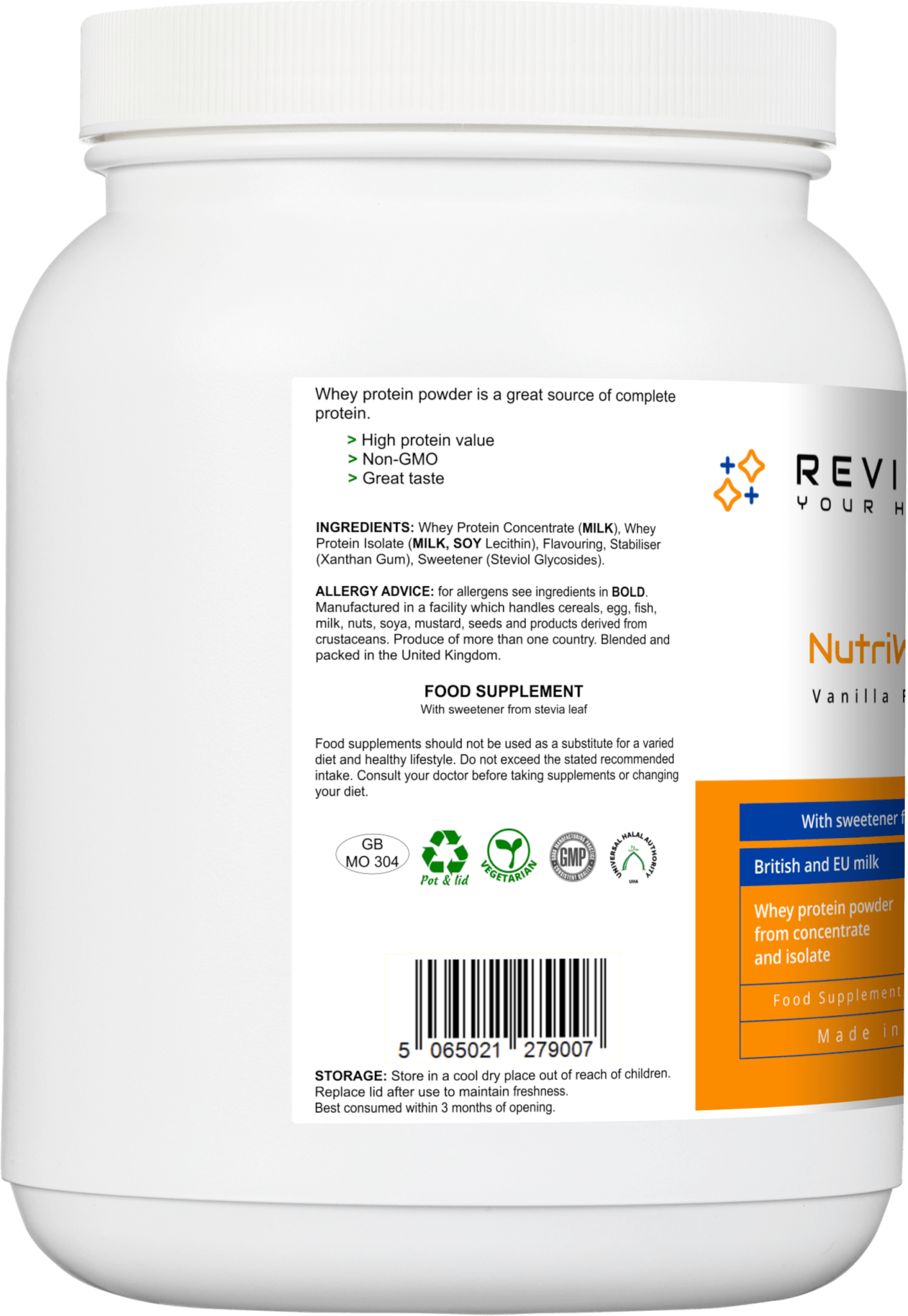 A delicious vanilla flavoured whey protein powder shake, derived from a blend of high quality whey protein concentrate and whey protein isolate.
