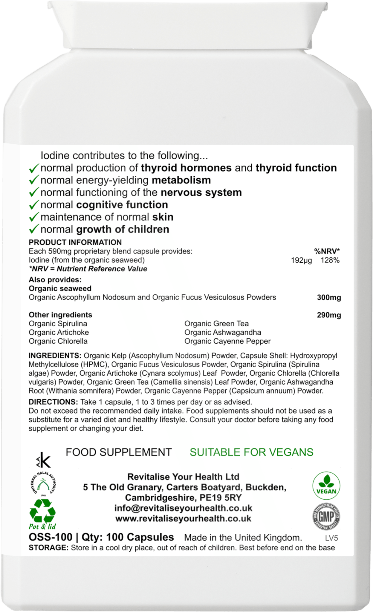 This food supplement is iodine-rich and high in a broad spectrum of protective nutrients, including antioxidants, phyto-chemicals, polyphenols, enzymes, amino acids, vitamins and minerals.