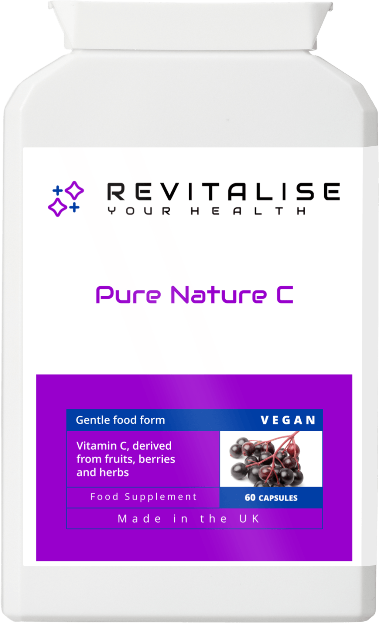 Pure Nature C is a premium, whole-food vitamin C complex derived from natural botanical sources including acerola cherry, rosehip, blackcurrant and elderberry. Unlike synthetic vitamin C supplements, this gentle food-state formula delivers naturally occurring vitamin C alongside a spectrum of phytonutrients, antioxidants and bioflavonoids designed for optimal absorption and long-term nutritional support.